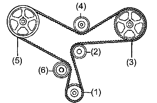 (1) If the installation marks have disappeared, put new installation marks on the timing belt before removing.