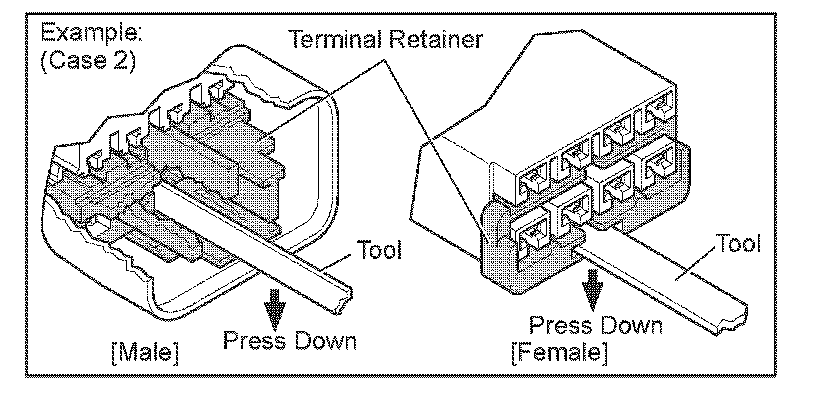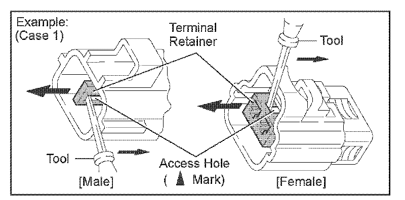 Type which cannot be pulled as far as Power Lock insert the tool straight into the access hole of terminal retainer as shown.