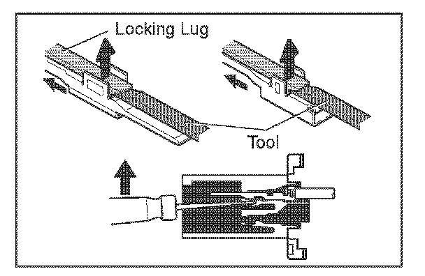 a. Locking device must be disengaged before the terminal locking clip can be released and the terminal removed from the connector.