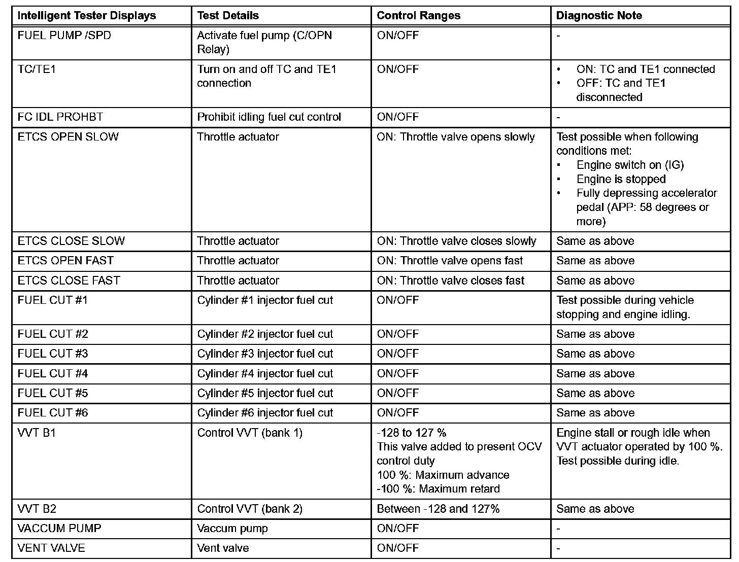 ACTIVE TESTHINT: Performing an ACTIVE TEST enables components including the relays, VSV (Vacuum Switching Valve) and actuators, to be operated without removing any parts.