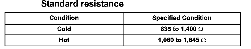 If the resistance is not as specified, replace the sensor.