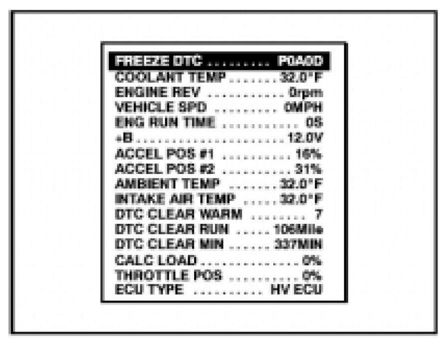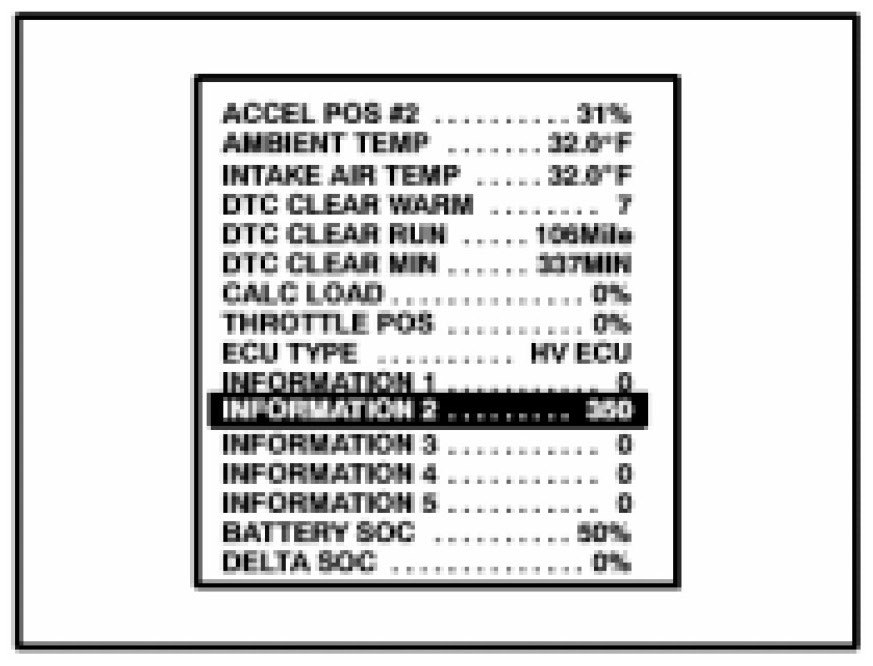 a. Select the item that has an INF code from among INFORMATION 1 to 5 on the freeze frame data screen.