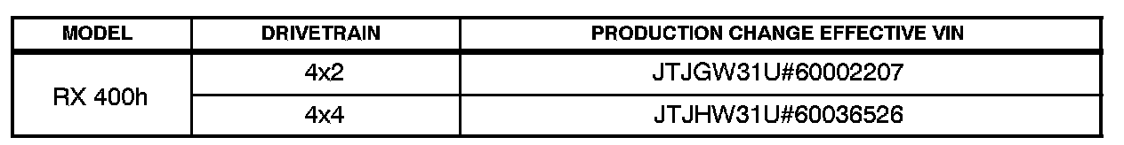 2006 model year RX 400h vehicles produced BEFORE the Production Change