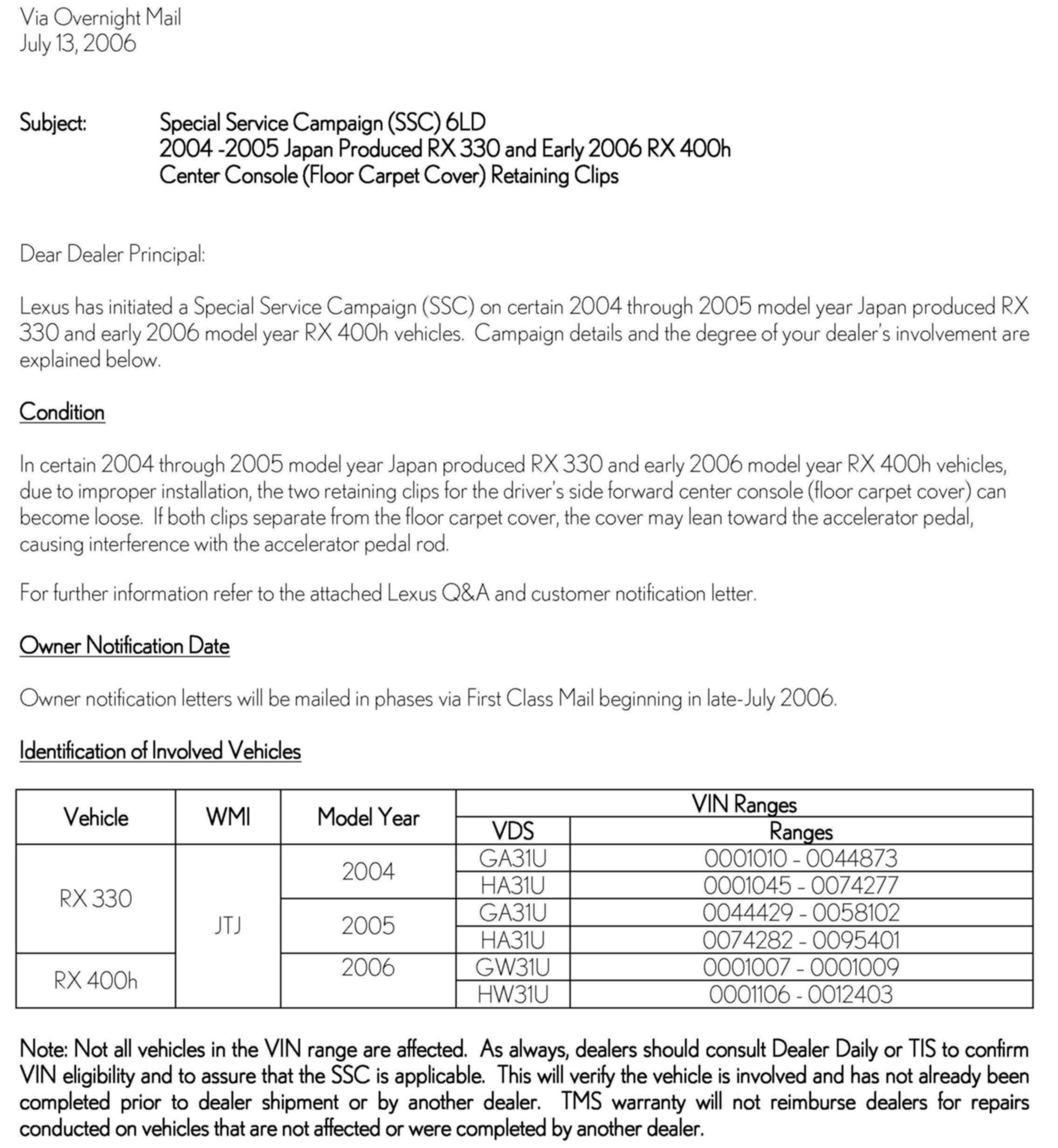 Dealer Letter