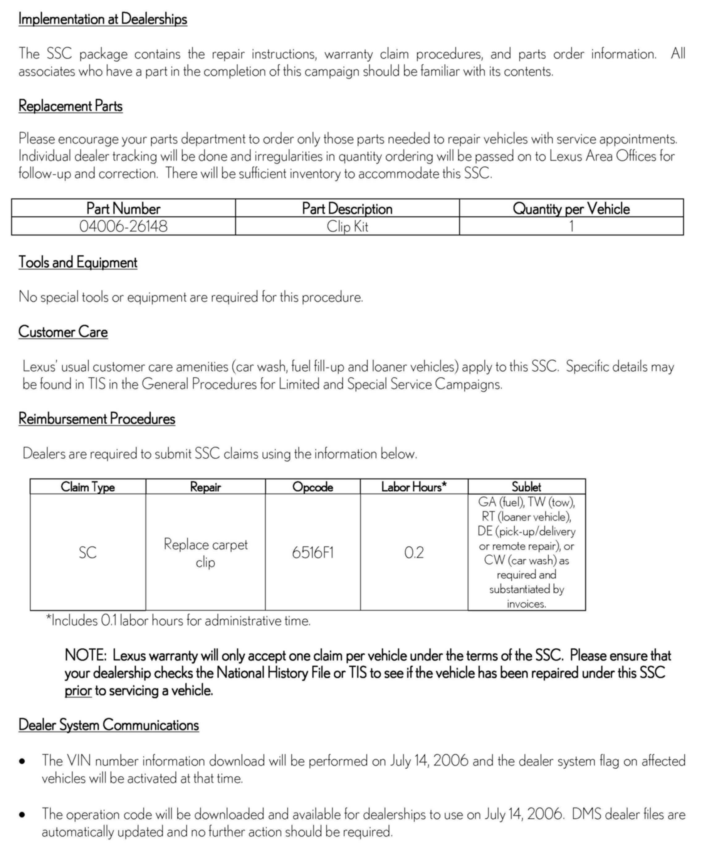 Technical Service Bulletins
