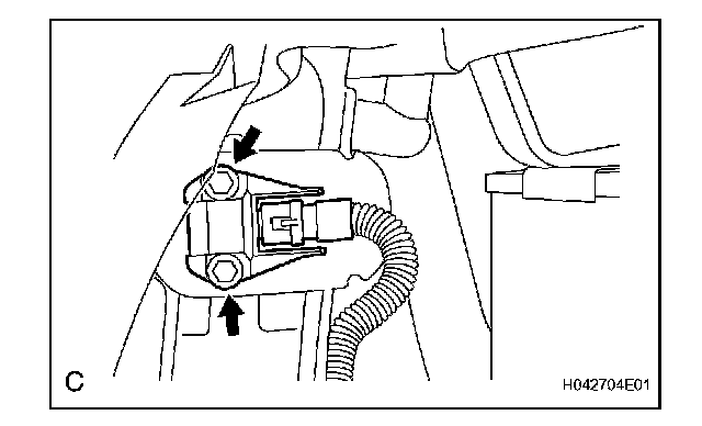 - When installing the front airbag sensor LH, be careful that the SRS wiring does not interfere with other parts and that it is not pinched between other parts.