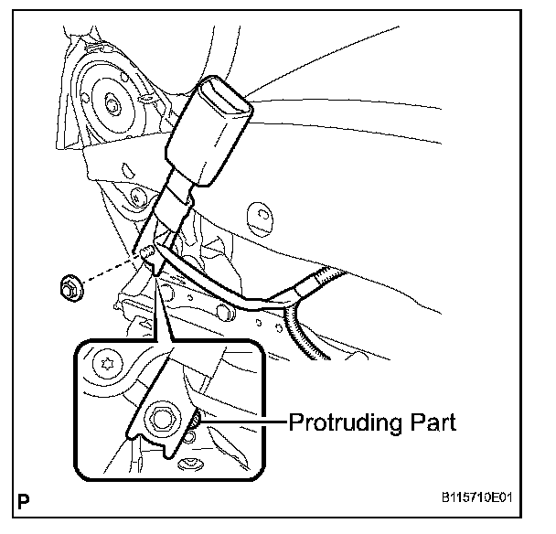 NOTE: Do not allow the anchor part of the front seat inner belt assembly and the protruding parts of the front seat adjuster to overlap.