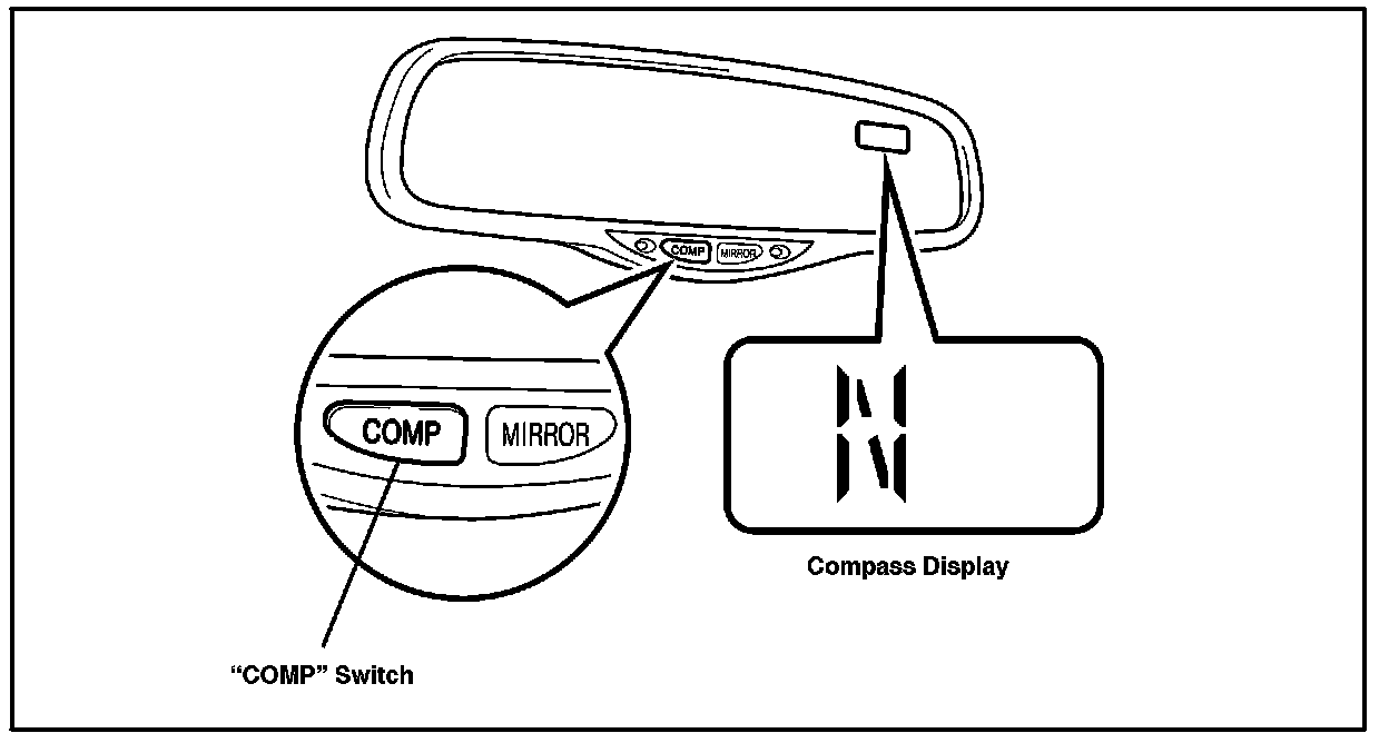 1. Turn the ignition switch to the "ON" position and check that the direction (N, NE, E, SE, S, SW, W, NW) appears on the compass display.