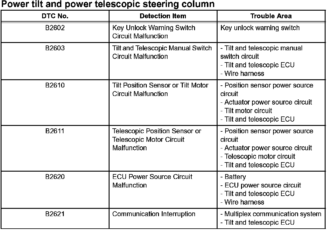 DIAGNOSTIC TROUBLE CODE CHARTIf a DTC is displayed during the DTC check, check the circuit for that code listed in the table. For details of each code, check the "DTC" for the respective "DTC No." in the DTC chart.