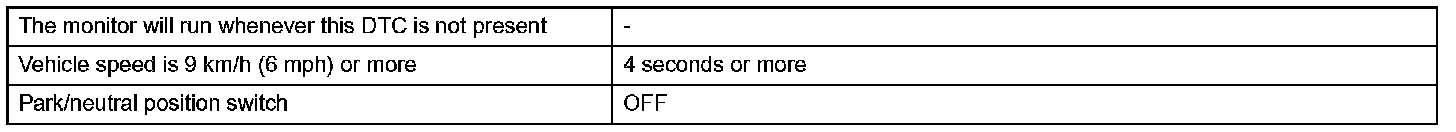 The ECM assumes that the vehicle is driven when the park/neutral position switch is OFF and it has been over 4 second since the actual vehicle speed was 9 km/h (6 mph) or more.