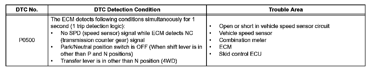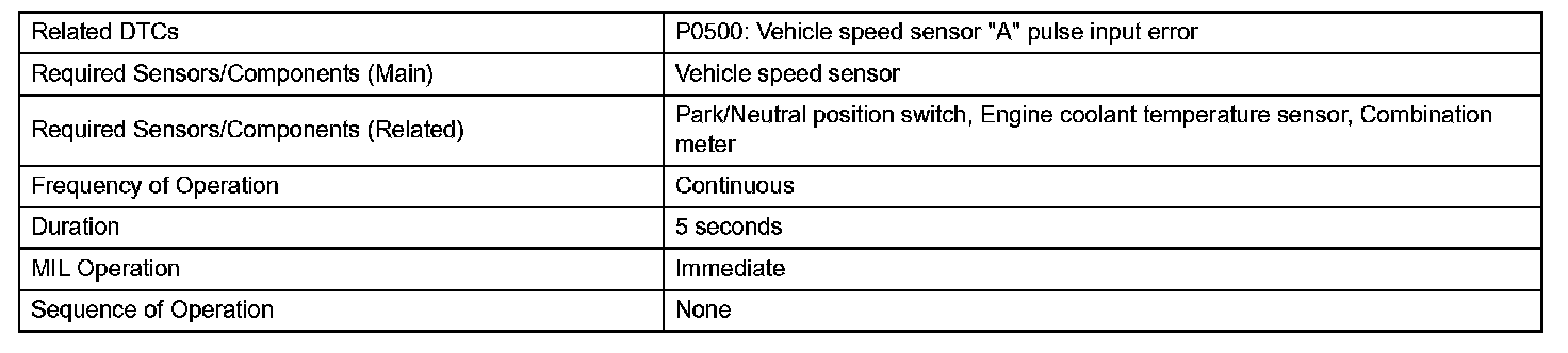 DTC P0500 Vehicle Speed Sensor "A"DESCRIPTION