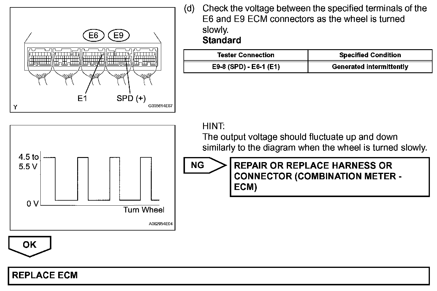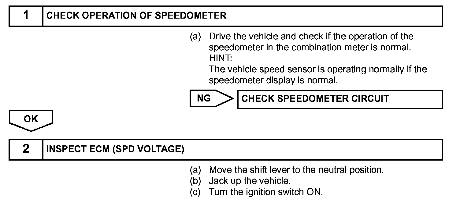 If there is no signal from the vehicle speed sensor when these conditions are satisfied, the ECM concludes that there is a fault in the vehicle speed sensor. The ECM will turn on the MIL and a DTC is set.