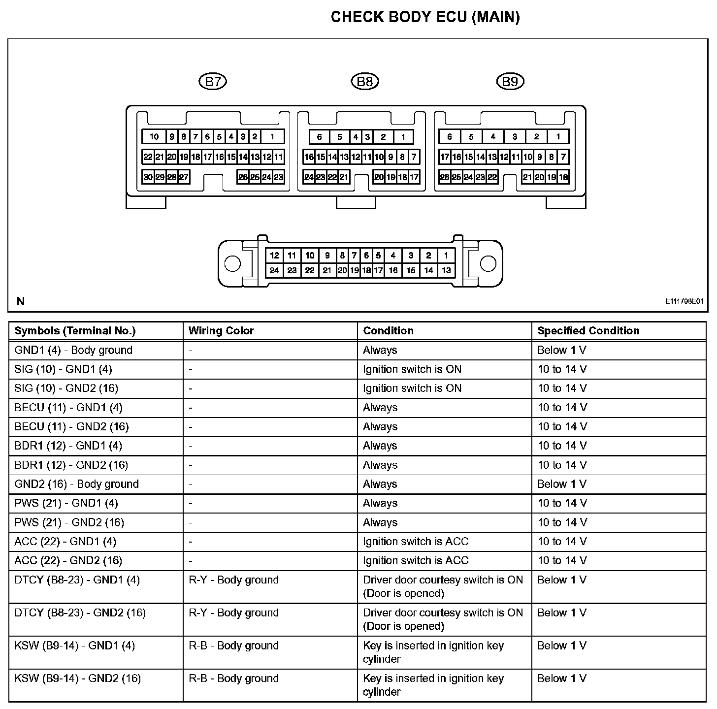 Terminals Of Control Module/Pinouts-Check Body ECU (Main):