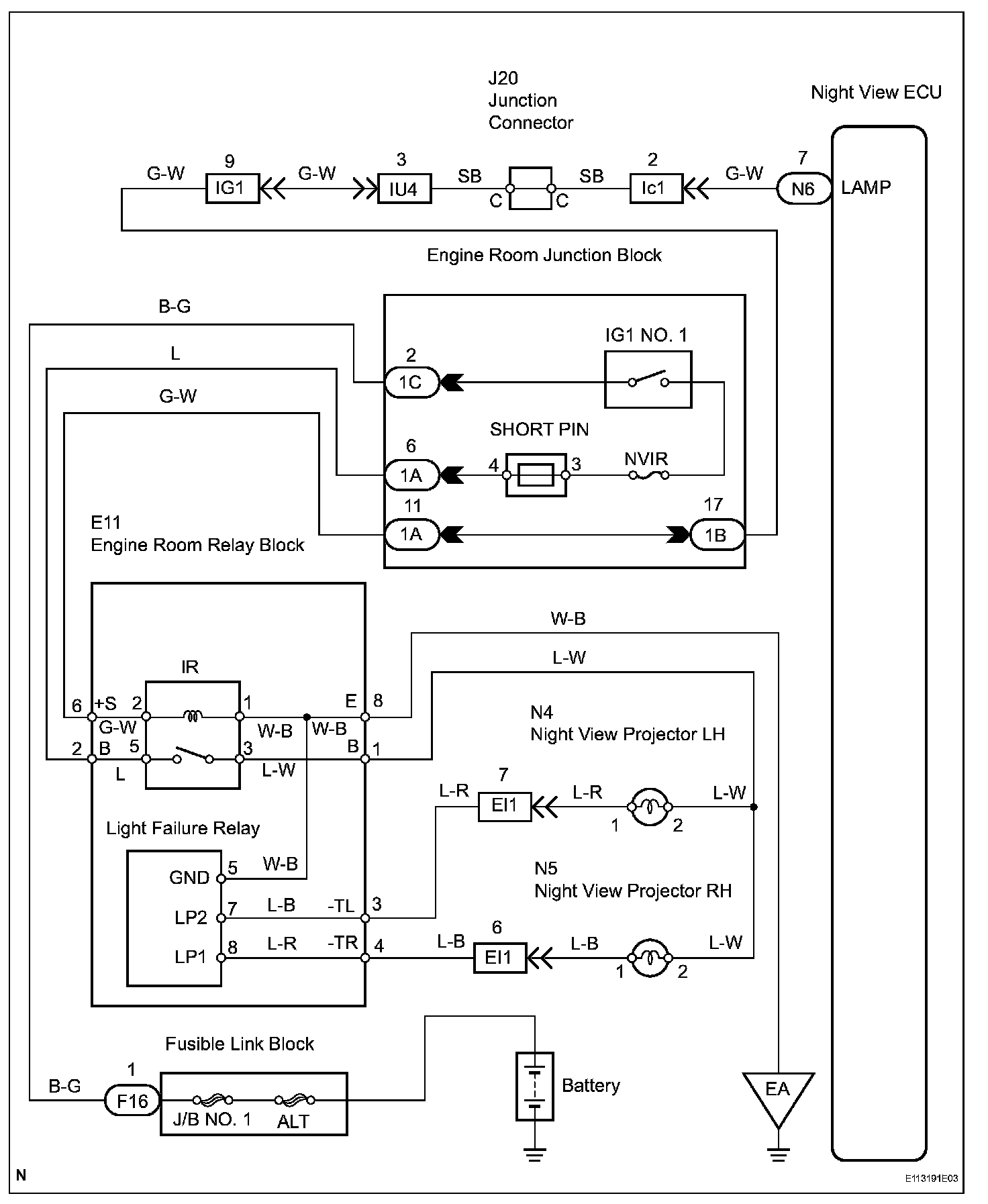 The night view relay, which controls the night view projector, is controlled by the night view ECU.