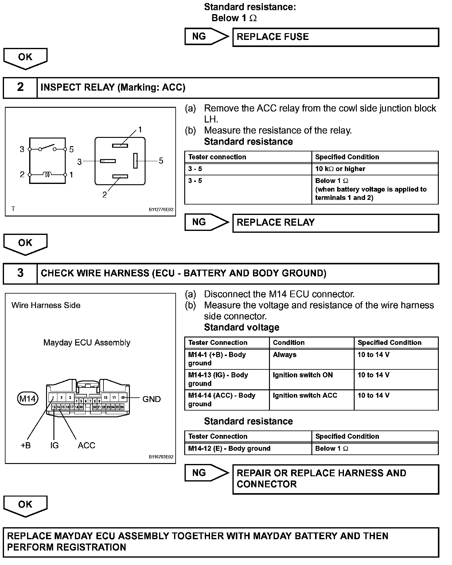 This circuit supplies power to operate the Mayday ECU assembly.