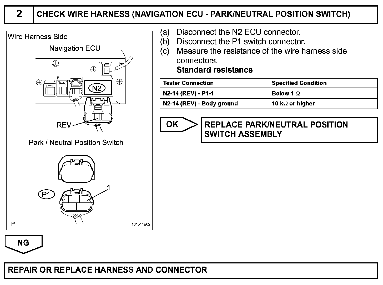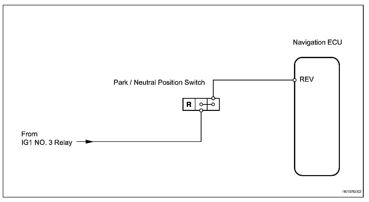 The navigation ECU receives the reverse signal from the park/neutral position switch and information about the GPS antenna, and then adjusts the vehicle position.