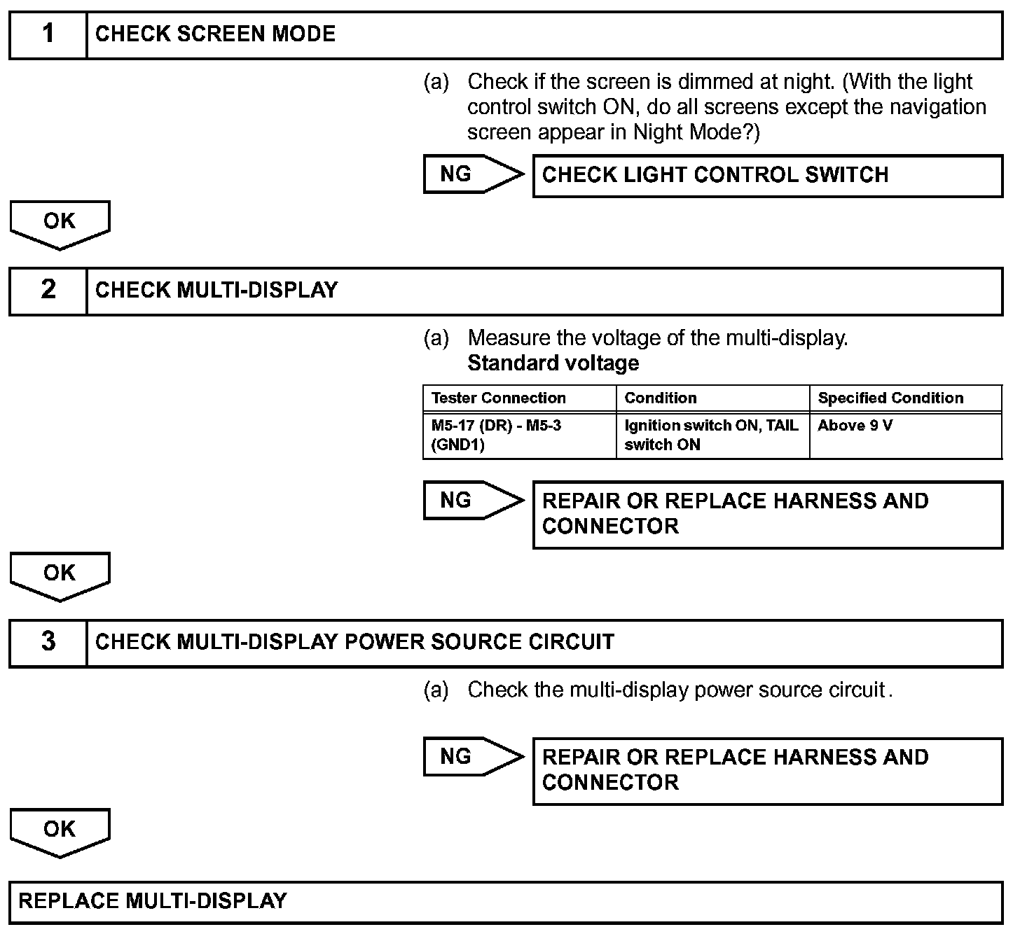 Display Does Not Dim (Night Screen) With Tail Switch on