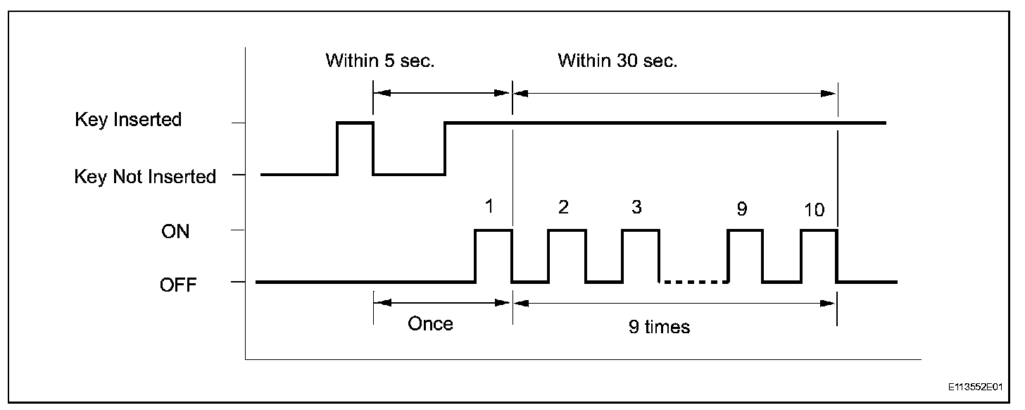 5. Repeat turning the ignition switch OFF to ON 9 times within 30 seconds.