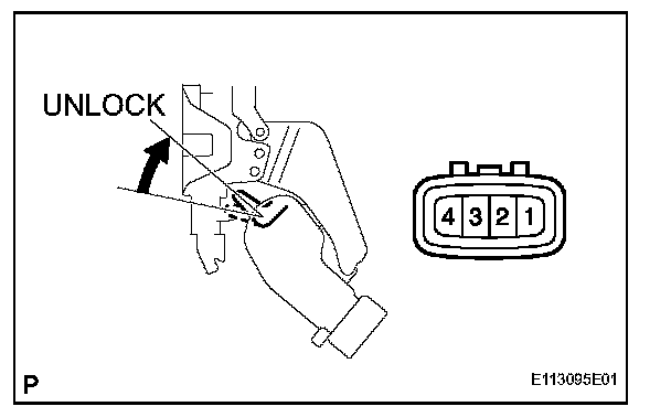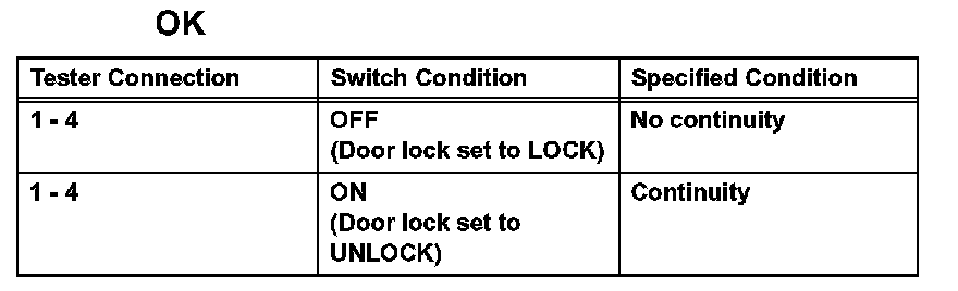 If the result is not as specified, replace the door lock assembly.