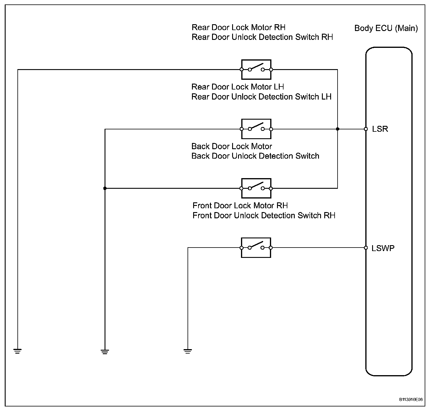 The door unlock detection switch is built in the door lock motor assembly. This switch is ON when the door lock switch is in the unlock position and OFF when the lock switch is in the lock position. The ECU detects the door lock switch conditions in this circuit. It is used as one of the operating conditions for the key confinement prevention function.