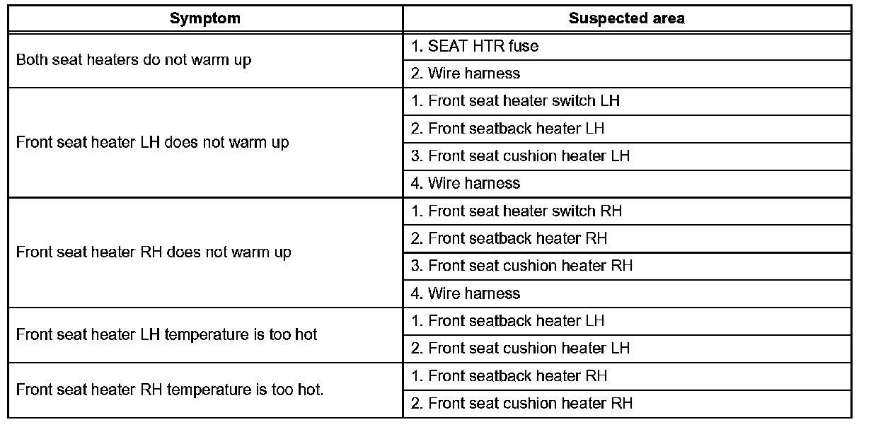 PROBLEM SYMPTOMS TABLEHINT: Use the table to help determine the cause of the problem symptom. The potential causes of the symptoms are listed in order of probability in the "Suspected Area" column of the table. Check each symptom by checking the suspected areas in the order they are listed. Replace parts as necessary.