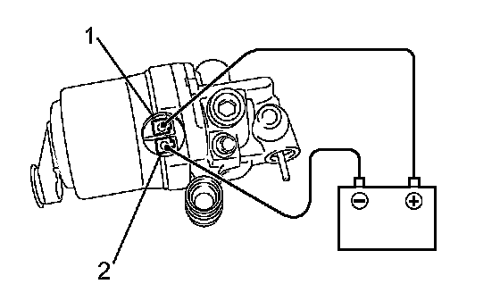 a. Connect the positive (+) lead from the battery to terminal 1 of the pump, and the negative (-) lead to terminal 2.