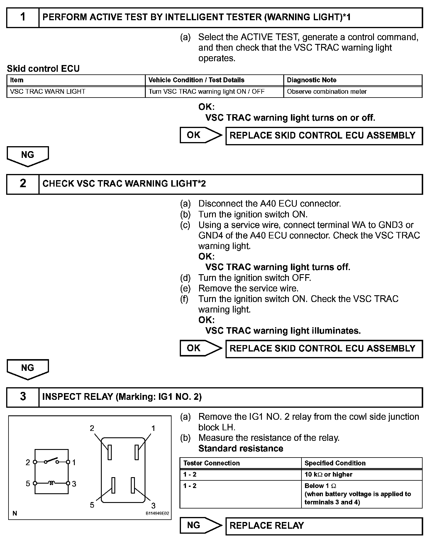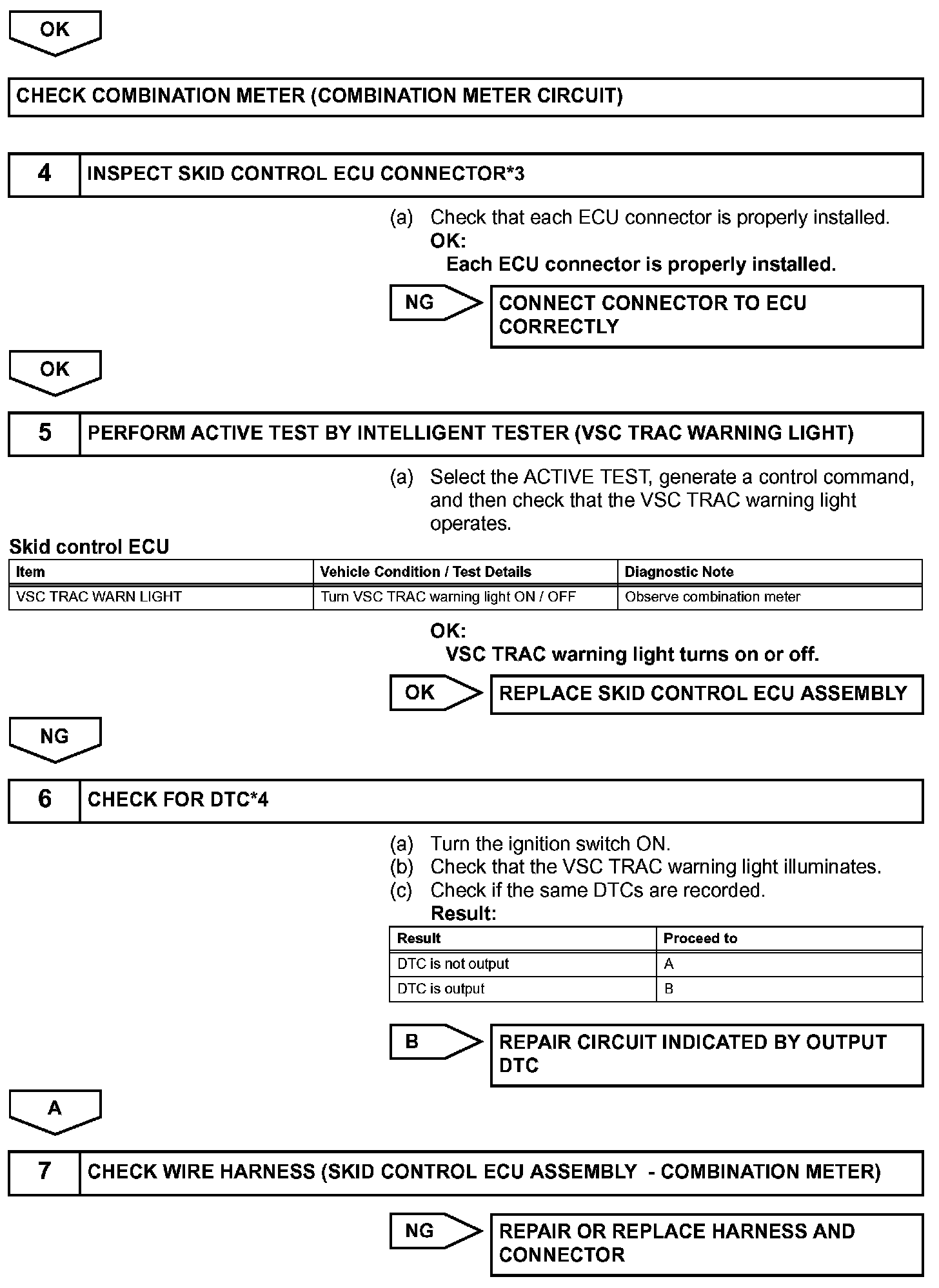 - When using the intelligent tester, start form *1 if the VSC TRAC warning light does not light up, or start form *3 if the VSC TRAC warning light remains on.