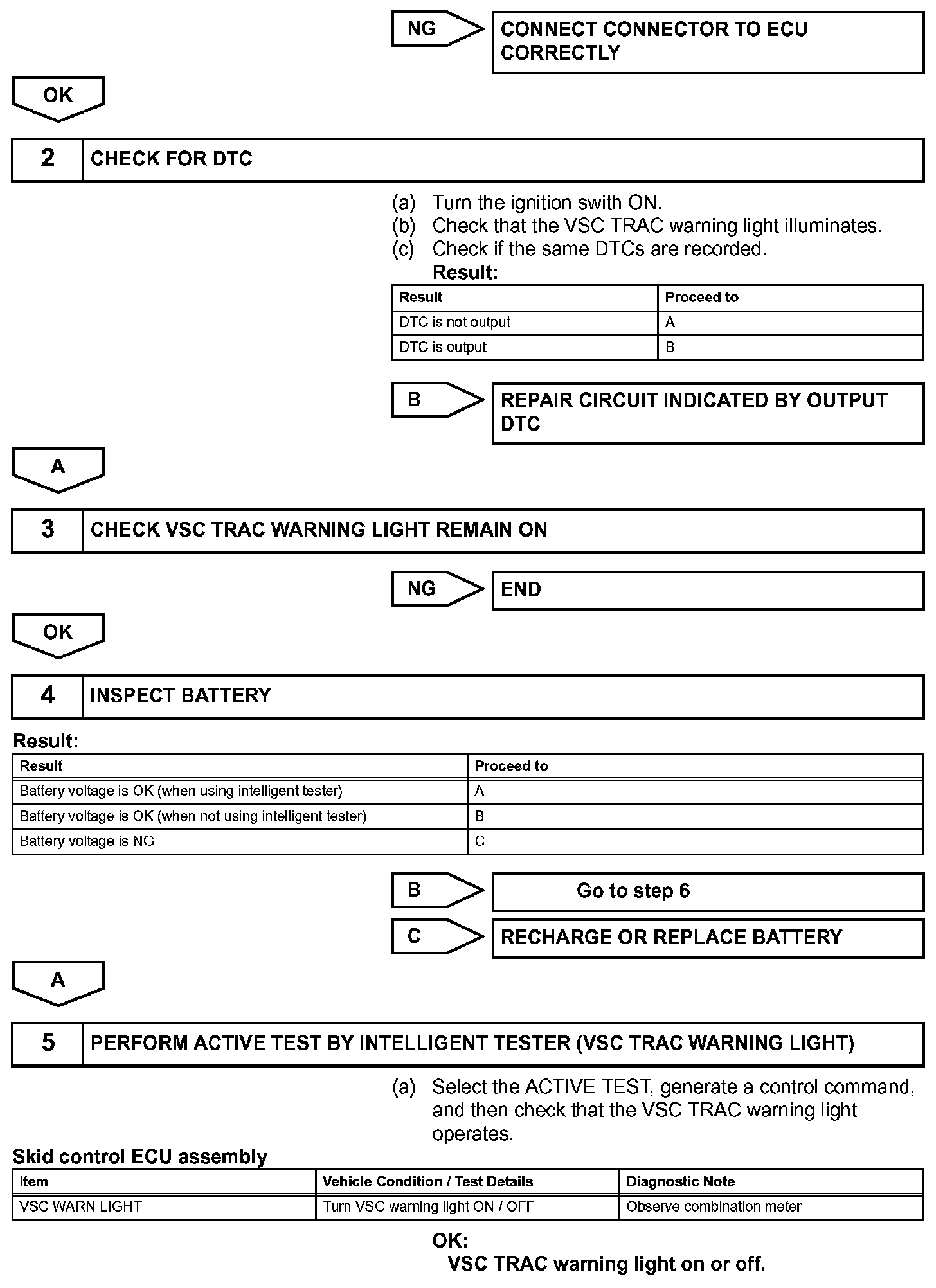 When checking for a 2 digit DTC, the VSC TRAC warning light may remain on.