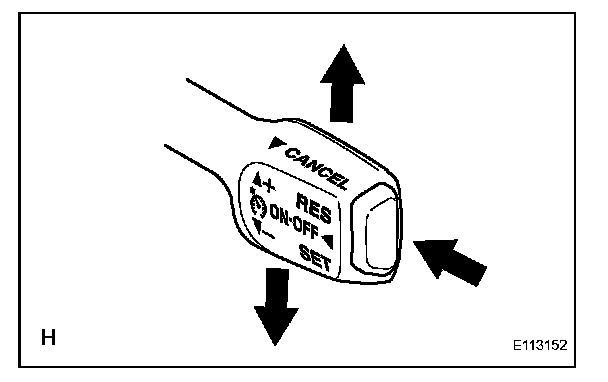 Check the cruise control main switch (MAIN, CANCEL, -/SET, +/RES).