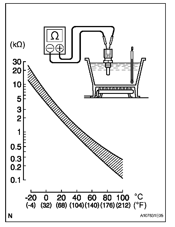 NOTE: When checking the ECT sensor in the water, keep the terminals dry. After the check, wipe the sensor dry.