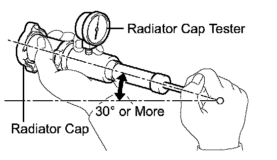 HINT: Use the tester's maximum reading as the opening pressure. If the maximum reading is less than the minimum opening pressure, replace the radiator cap.