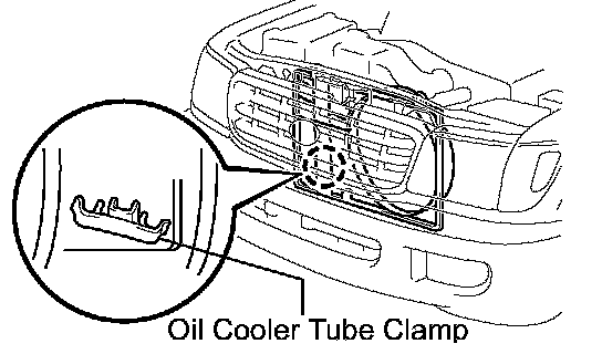 d. Connect the 2 oil cooler tubes to the clamp on the fan shroud.