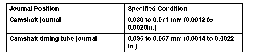 If the oil clearance is greater than the maximum, replace the camshaft and timing tube. If necessary, replace the bearing caps and cylinder head as a set.