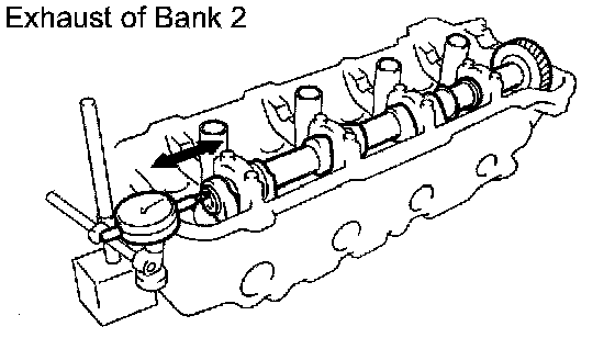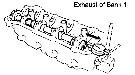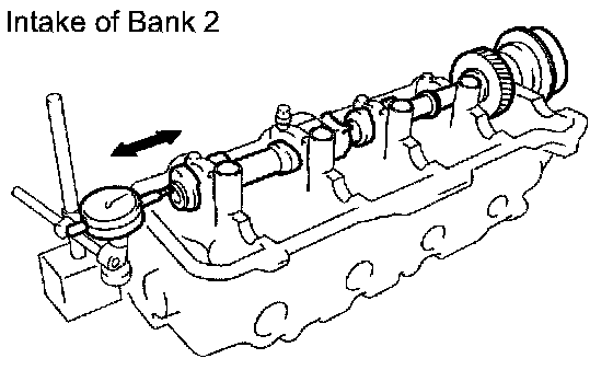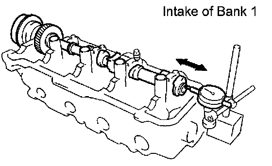 2 Using a dial indicator, measure the thrust clearance while moving the camshaft back and forth.