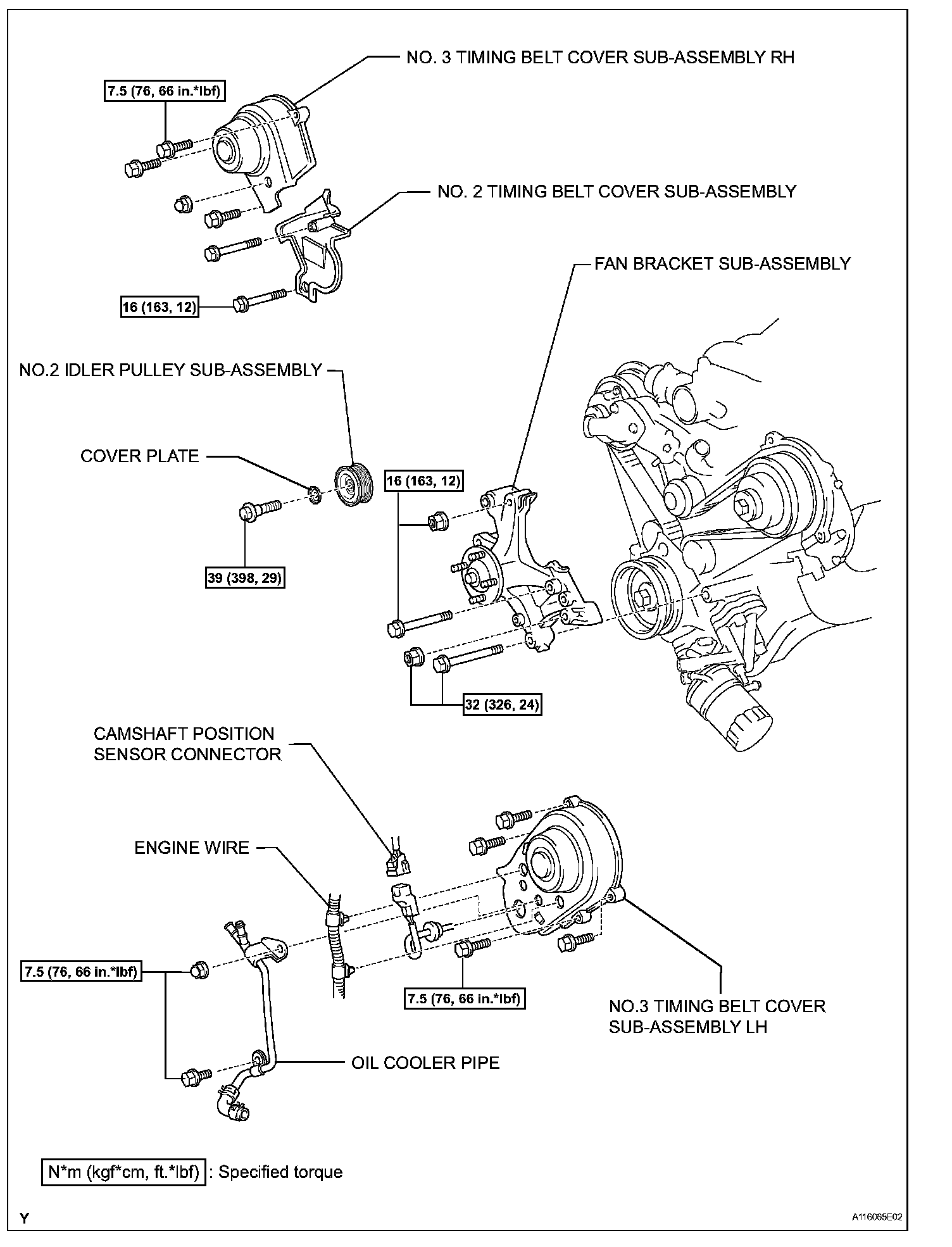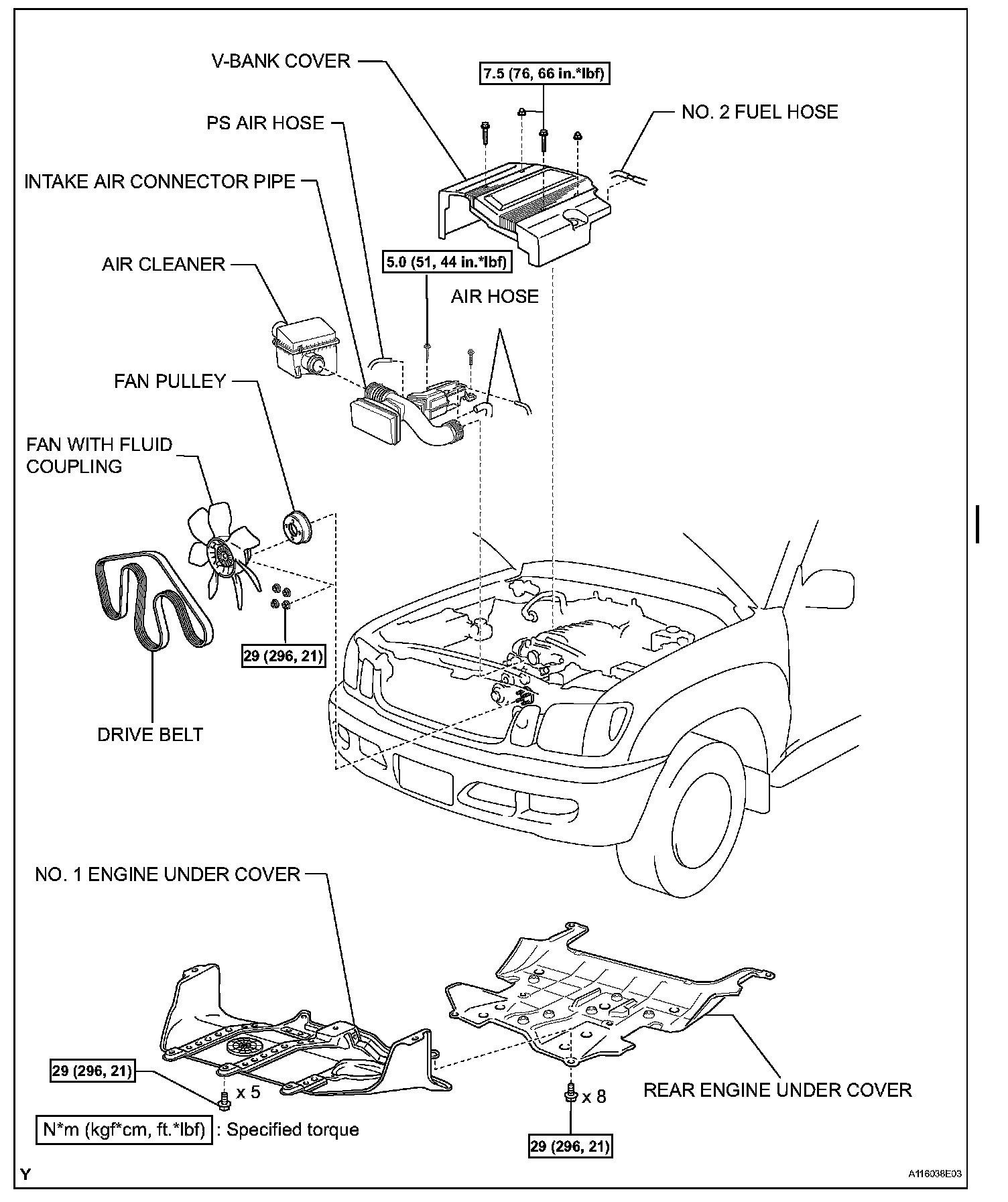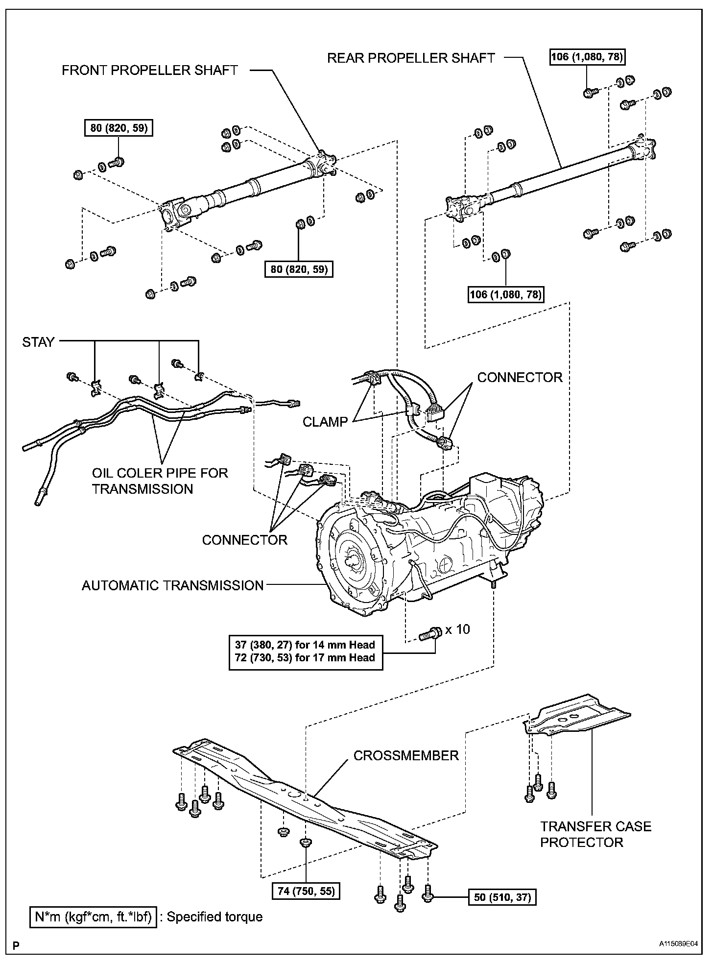Torque: 15.5 Nm (158 kgf-cm, 11 ft. lbs.) for bolt A, B, C and E