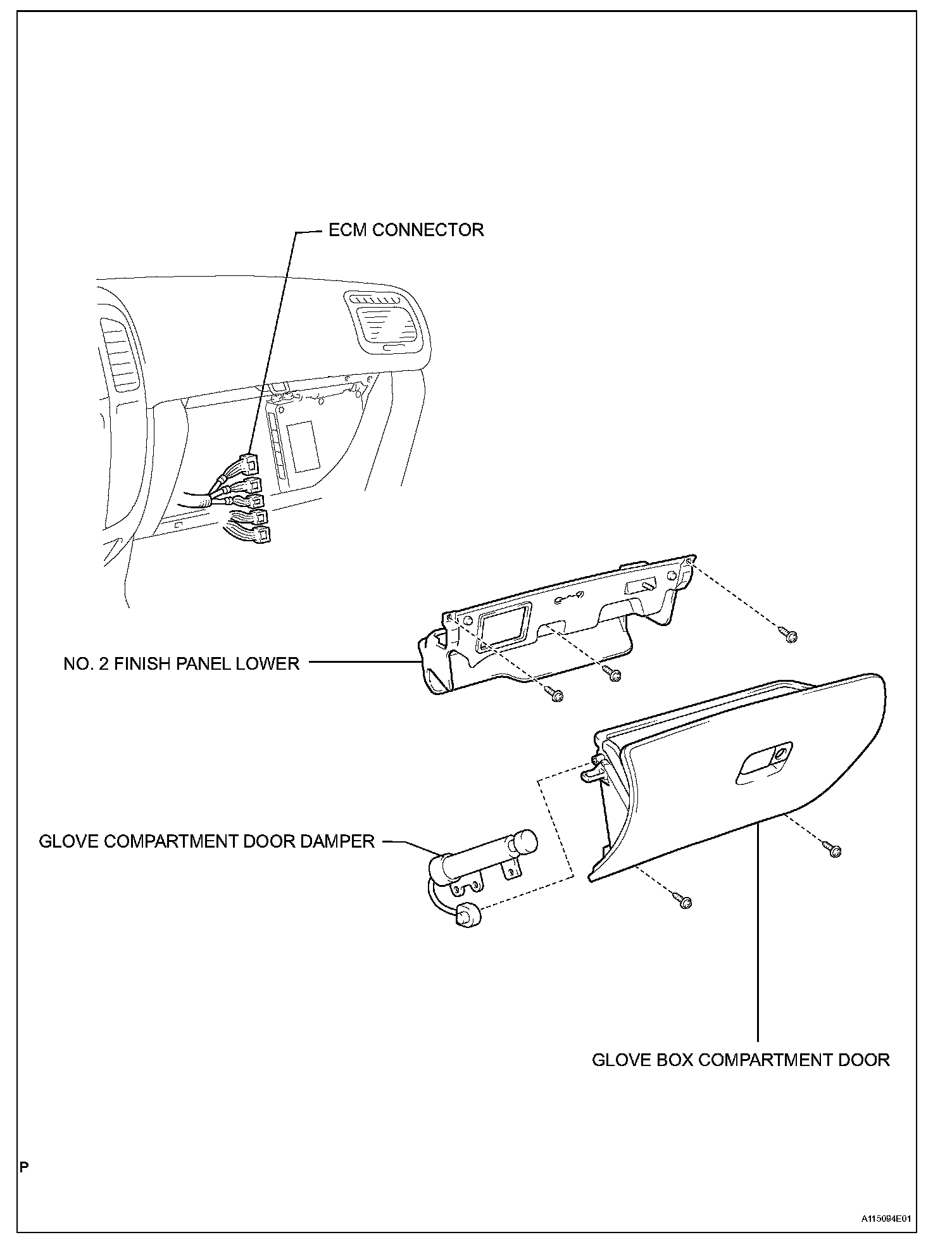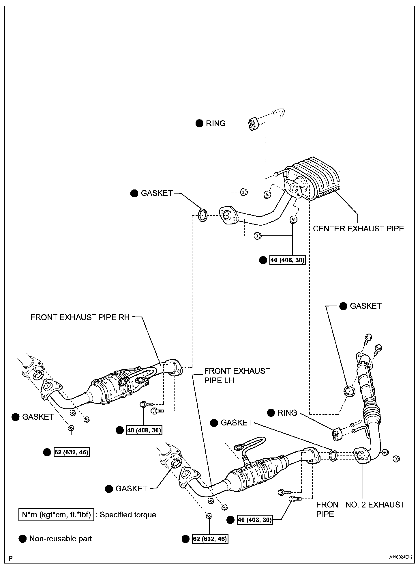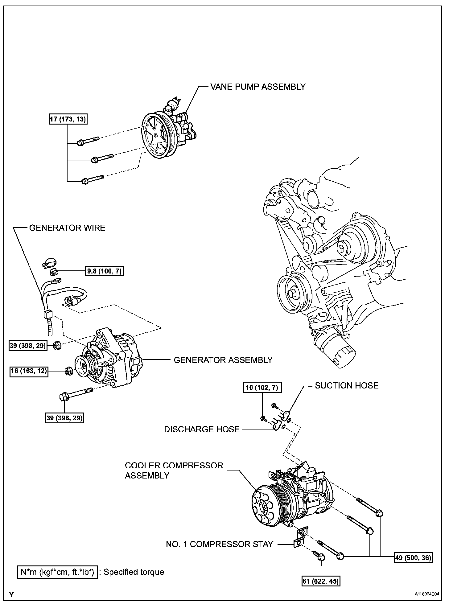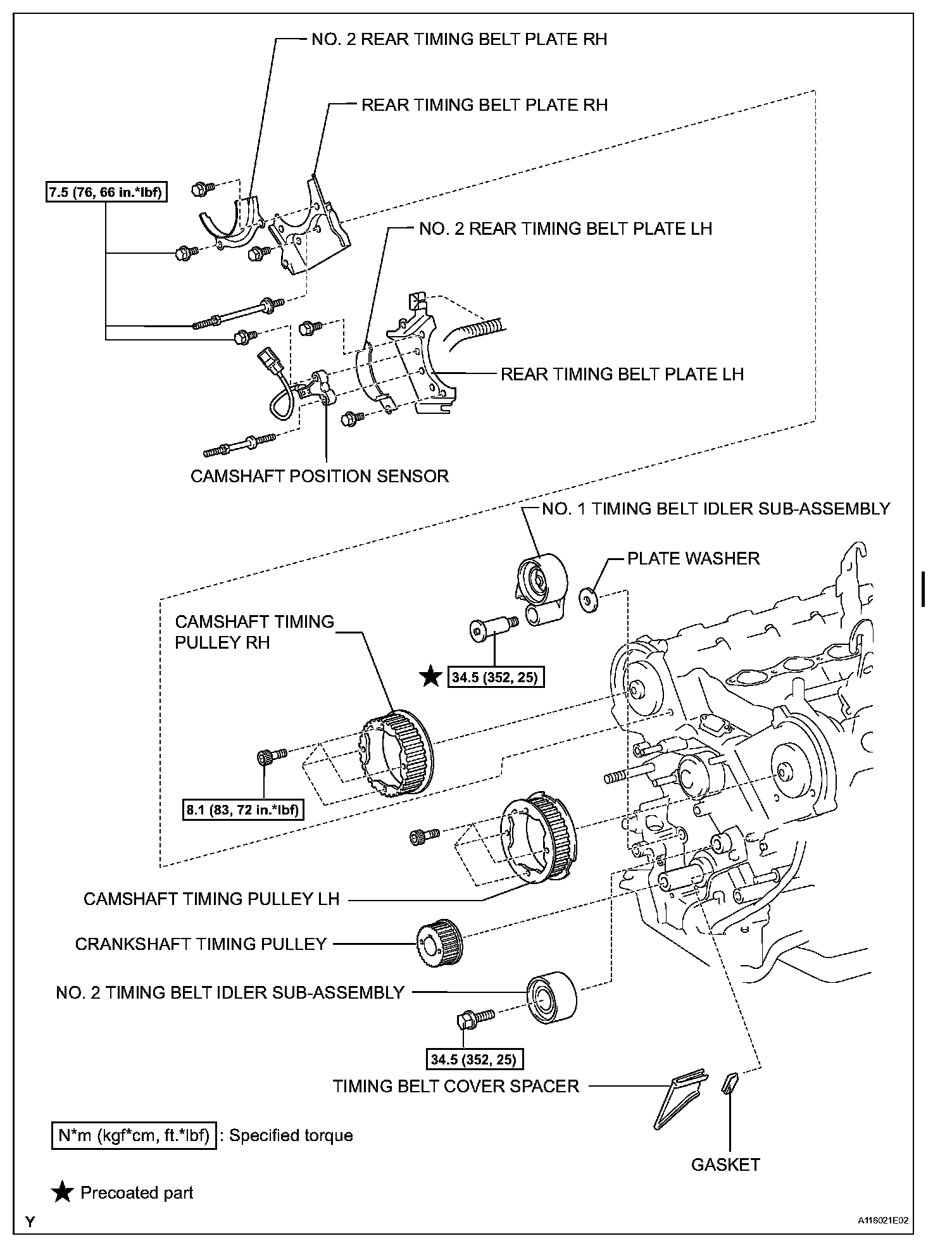 Torque: 15.5 Nm (158 kgf-cm, 11 ft. lbs.) for bolt A, B, C and E