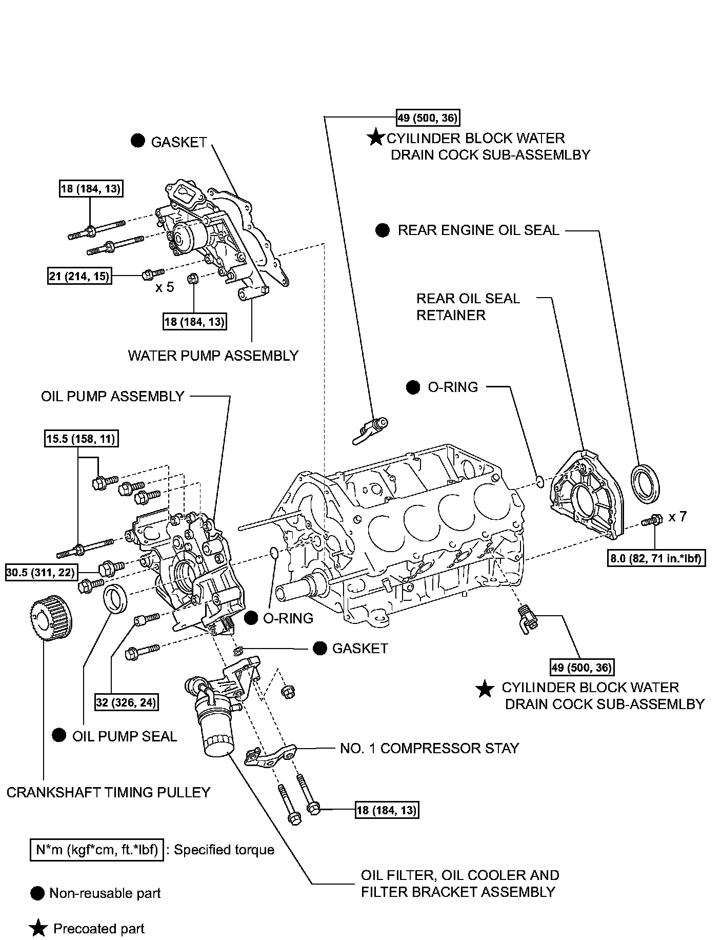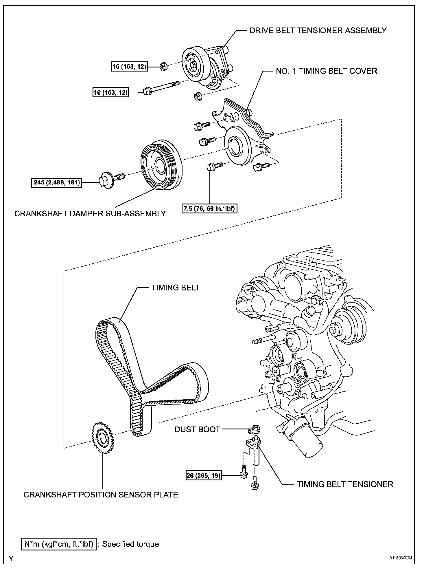 30.5 Nm (311 kgf-cm, 22 ft. lbs.) for bolt D