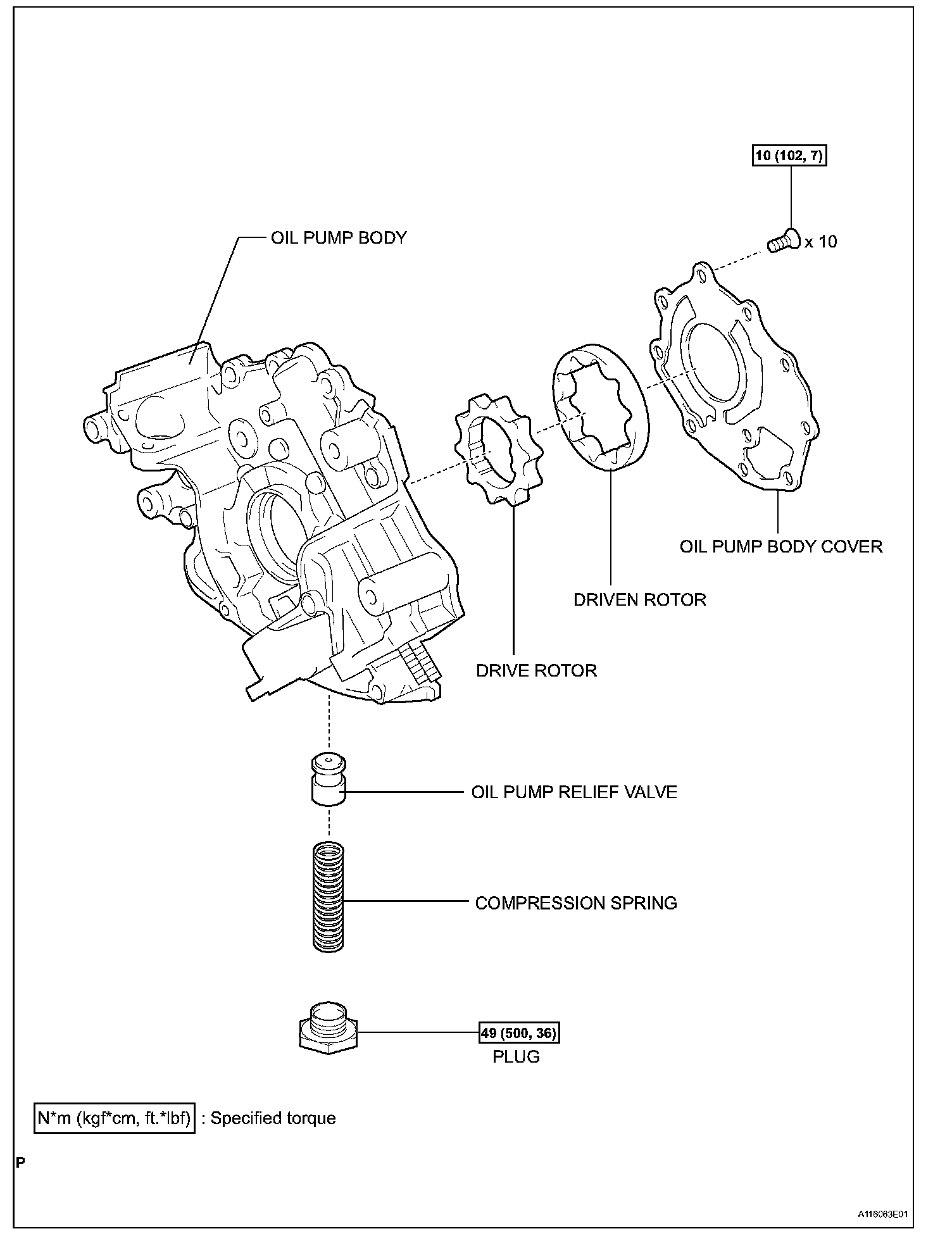 a. Remove the plug, compression spring and relief valve.