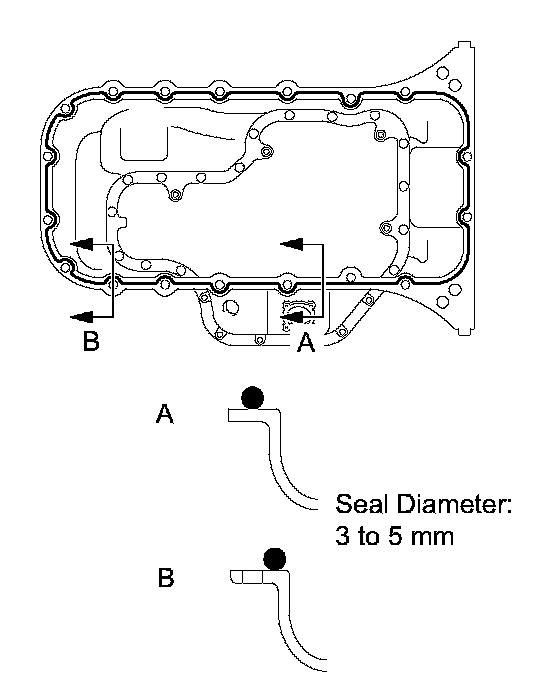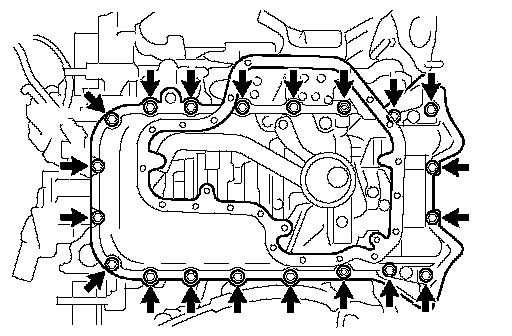 ^ Install the oil pan within 3 minutes and tighten the bolts within 15 minutes after applying seal packing.