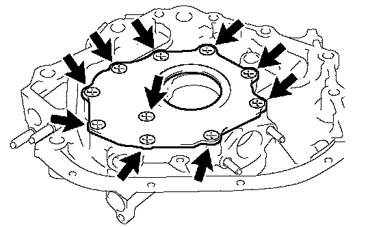 f. Install the oil pump with the 8 bolts. Uniformly tighten the bolts in several passes.
