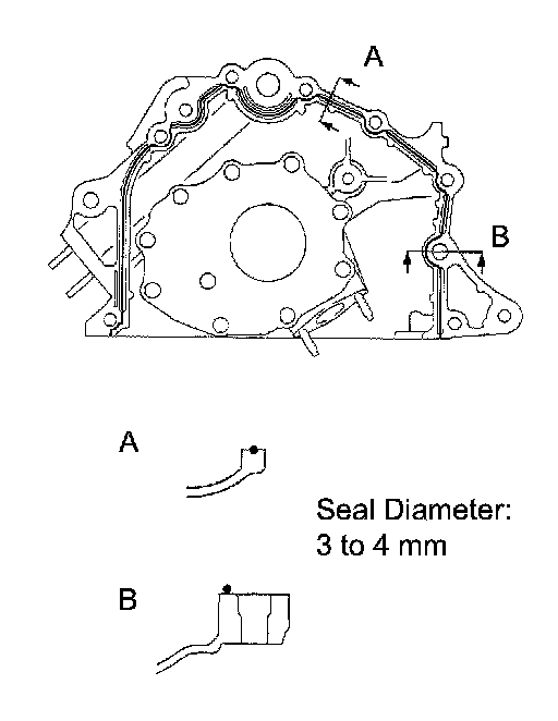 b. Apply seal packing to the oil pump as shown in the illustration.