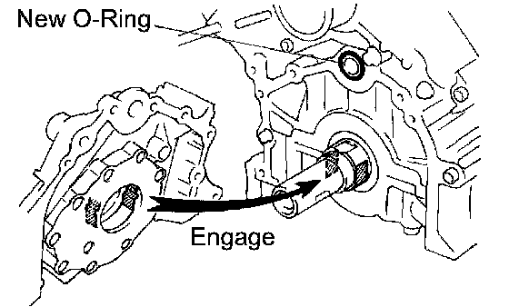e. Align the spline teeth of the oil pump drive gear with the large teeth of the crankshaft, and slide the oil pump onto the crankshaft.