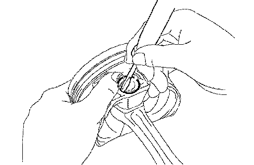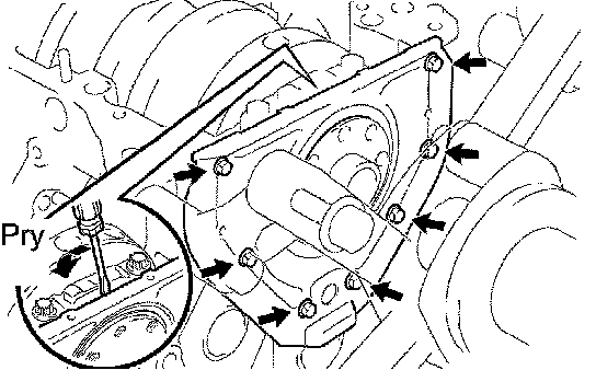 b. Using a screwdriver, remove the oil seal retainer by prying the portions between the oil seal retainer and crankshaft bearing cap.