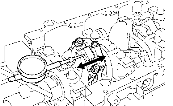 a. Using a dial indicator, measure the thrust clearance while moving the connecting rod back and forth.