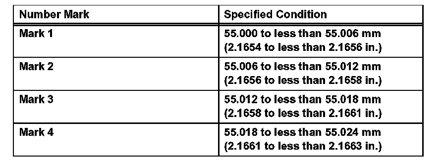 Standard oil clearance: 0.021 to 0.047 mm (0.0008 to 0.0019 inch)