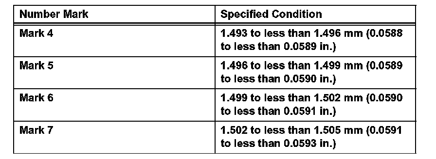 Standard thrust washer thickness: 2.440 to 2.490 mm (0.0961 to 0.0980 inch)