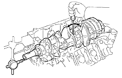 e. Check the crank pin and bearing for pitting and scratches. If the crank pin or bearing is damaged, replace the bearings. If necessary, replace the crankshaft.