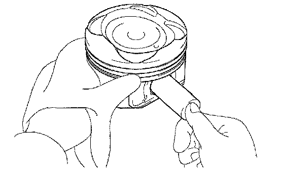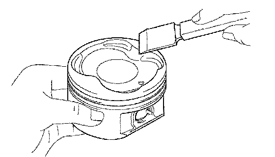 1 Heat the piston to approximately 60°C (140°F) and push the piston pin into the piston pin hole with your thumb.