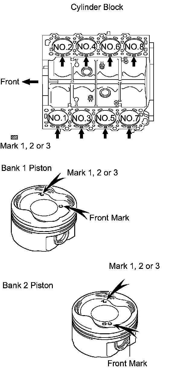 HINT: There are 3 sizes of the standard cylinder bore diameter, marked 1, 2 and 3 accordingly The mark is stamped on the top of the cylinder block.