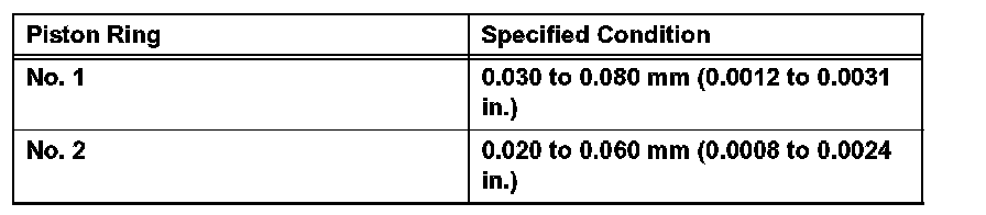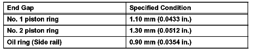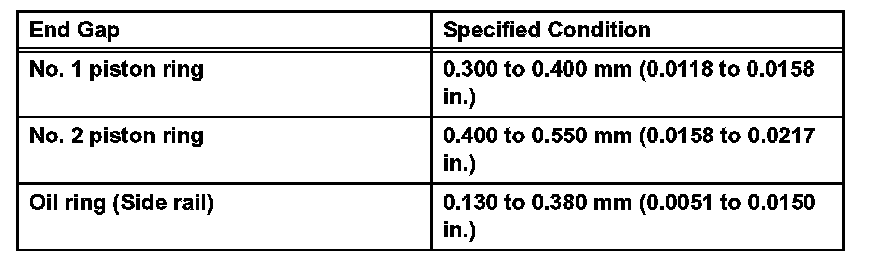 If the end gap is greater than the maximum, replace the piston ring. If the end gap is greater than the maximum even with a new piston ring, rebore all 8 cylinders or replace the cylinder block sub-assembly.